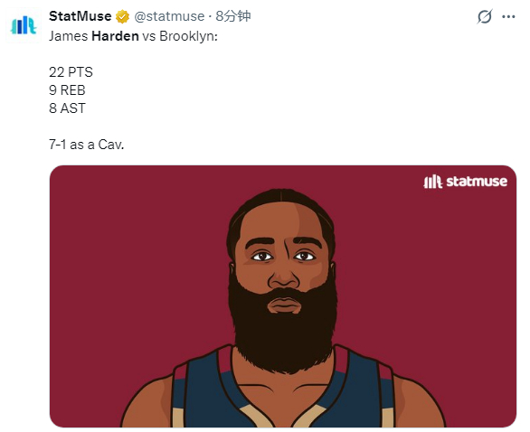 自从加盟骑士以来,哈登已经为骑士打了8场比赛,战绩为7胜1负;即使拇指骨折,哈登仅仅只休息两场便带伤回归,为了球队赢球,他真是尽职尽责,联盟顶级牛马真的太拼了。